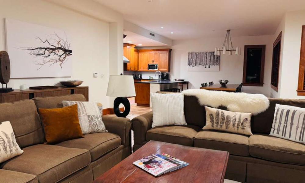 Guests enjoy access to Hummingbird Lodge’s private clubhouse, featuring a fitness room, game lounge, outdoor hot tubs, and a fire pit for the perfect après-ski gathering.